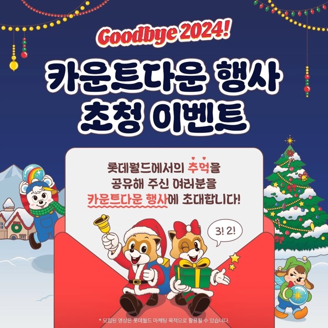 이번 축제는 기존 롯데월드의 즐길 거리 위에 다양한 연말 테마의 프로그램을 더한 특별한 이벤트입니다. 대규모의 레드카펫 포토타임, 감동적인 협업 공연, 그리고 자정을 맞이하는 DJ 레이저쇼까지 모든 순간이 잊지 못할 추억으로 남을 것입니다.